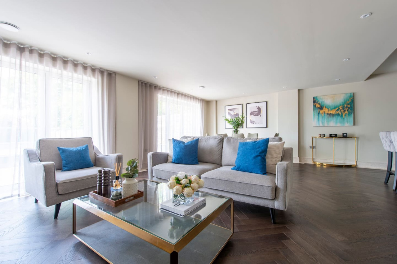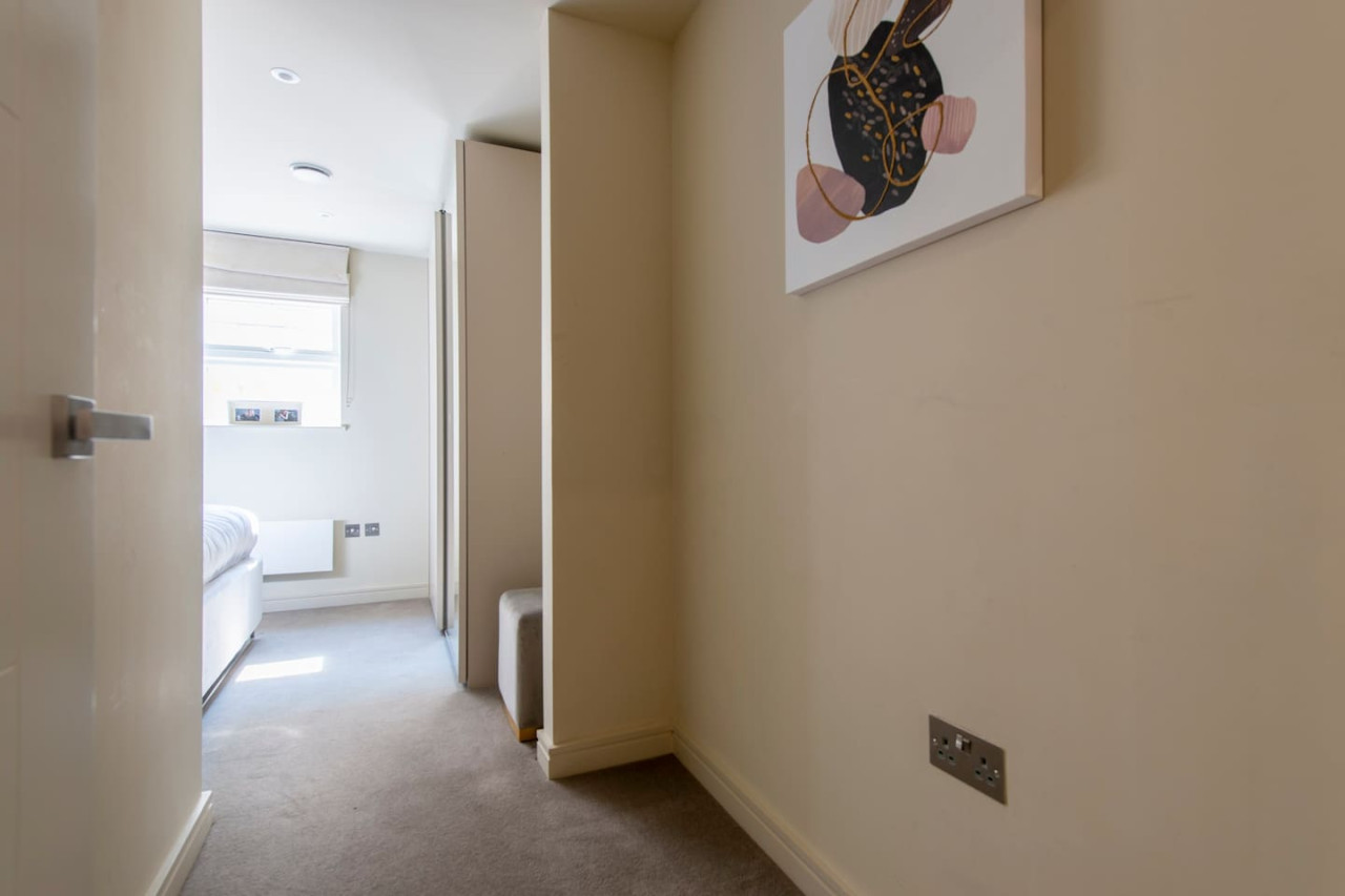 Indulge in luxurious living at our elegant apartment with terrace. Stylishly designed, it offers contemporary comfort, a spacious master bedroom with walk-in wardrobe, and a serene communal garden. Perfect for families, groups, and business travellers. Conveniently located near transport links, enjoy the best of village charm and central London's vibrant energy. Value, convenience, and sophistication await you. Forget your worries in this spacious and serene space.