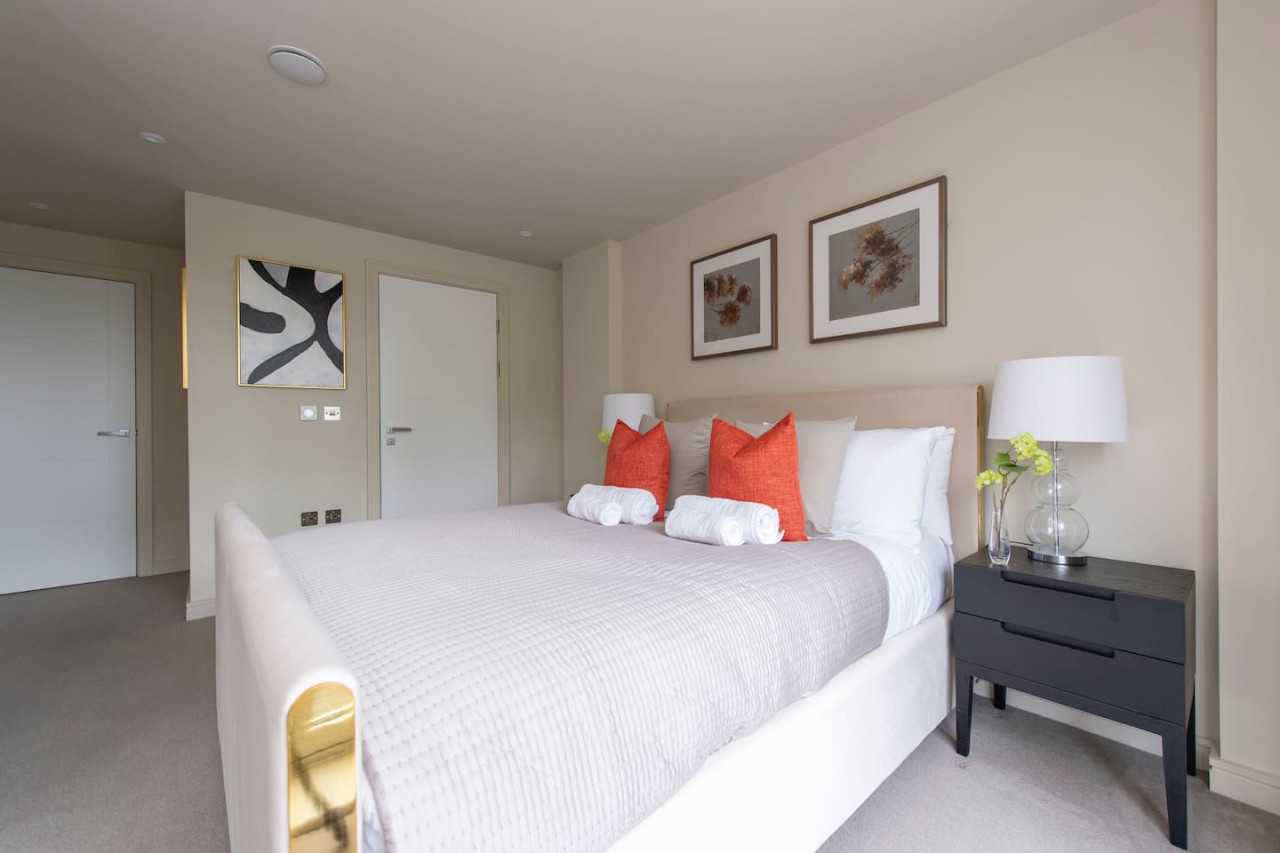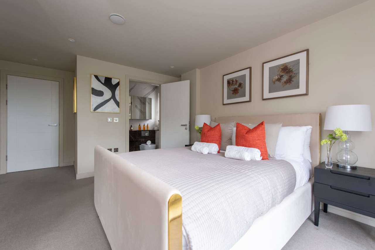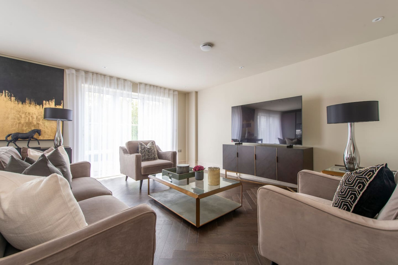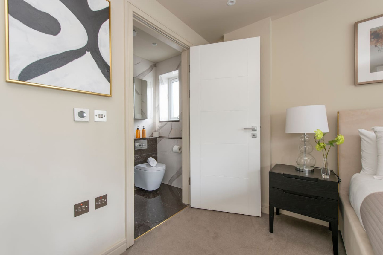 Indulge in luxurious living at our elegant apartment with terrace. Stylishly designed, it offers contemporary comfort, a spacious master bedroom with walk-in wardrobe, and a serene communal garden. Perfect for families, groups, and business travellers. Conveniently located near transport links, enjoy the best of village charm and central London's vibrant energy. Value, convenience, and sophistication await you. Forget your worries in this spacious and serene space.
