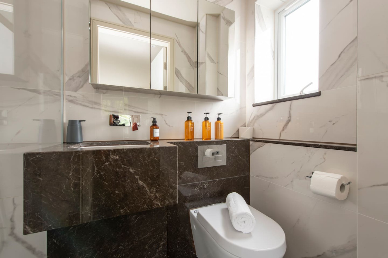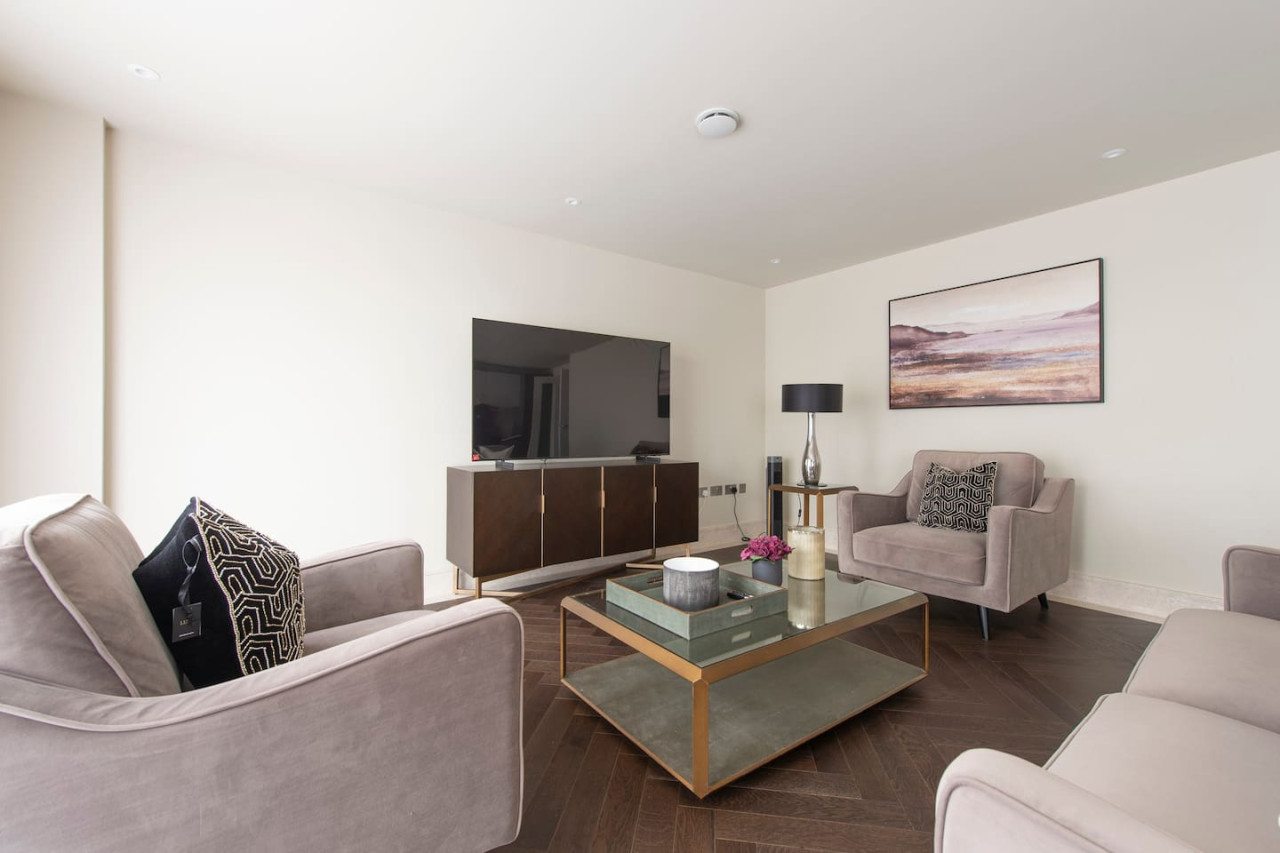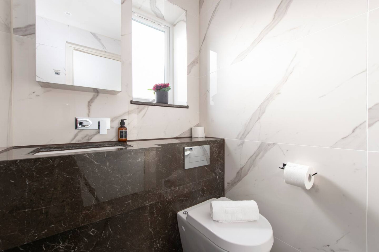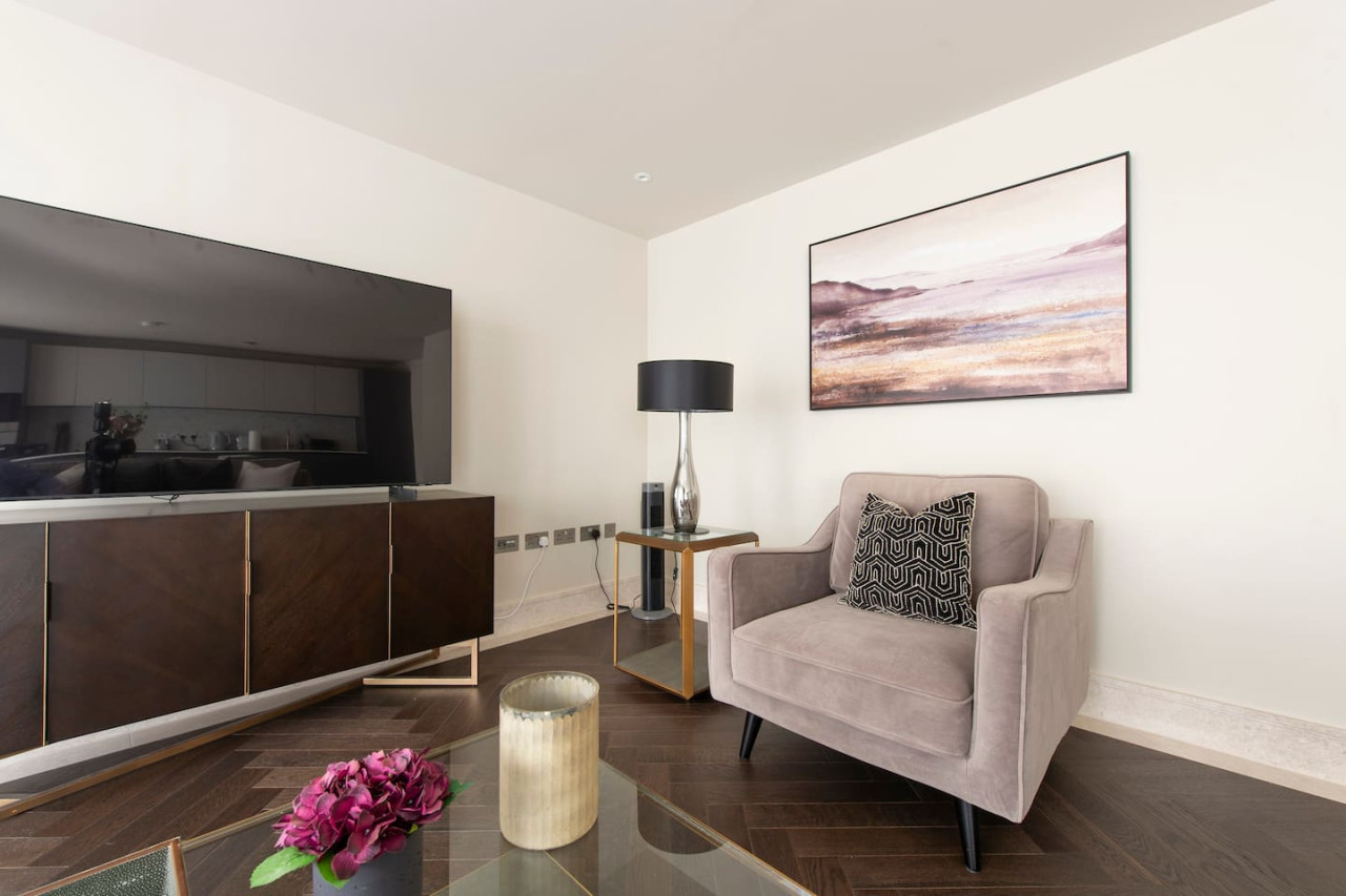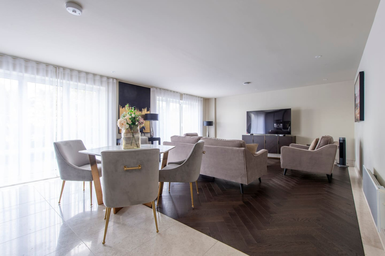 Indulge in luxurious living at our elegant apartment with terrace. Stylishly designed, it offers contemporary comfort, a spacious master bedroom with walk-in wardrobe, and a serene communal garden. Perfect for families, groups, and business travellers. Conveniently located near transport links, enjoy the best of village charm and central London's vibrant energy. Value, convenience, and sophistication await you. Forget your worries in this spacious and serene space.