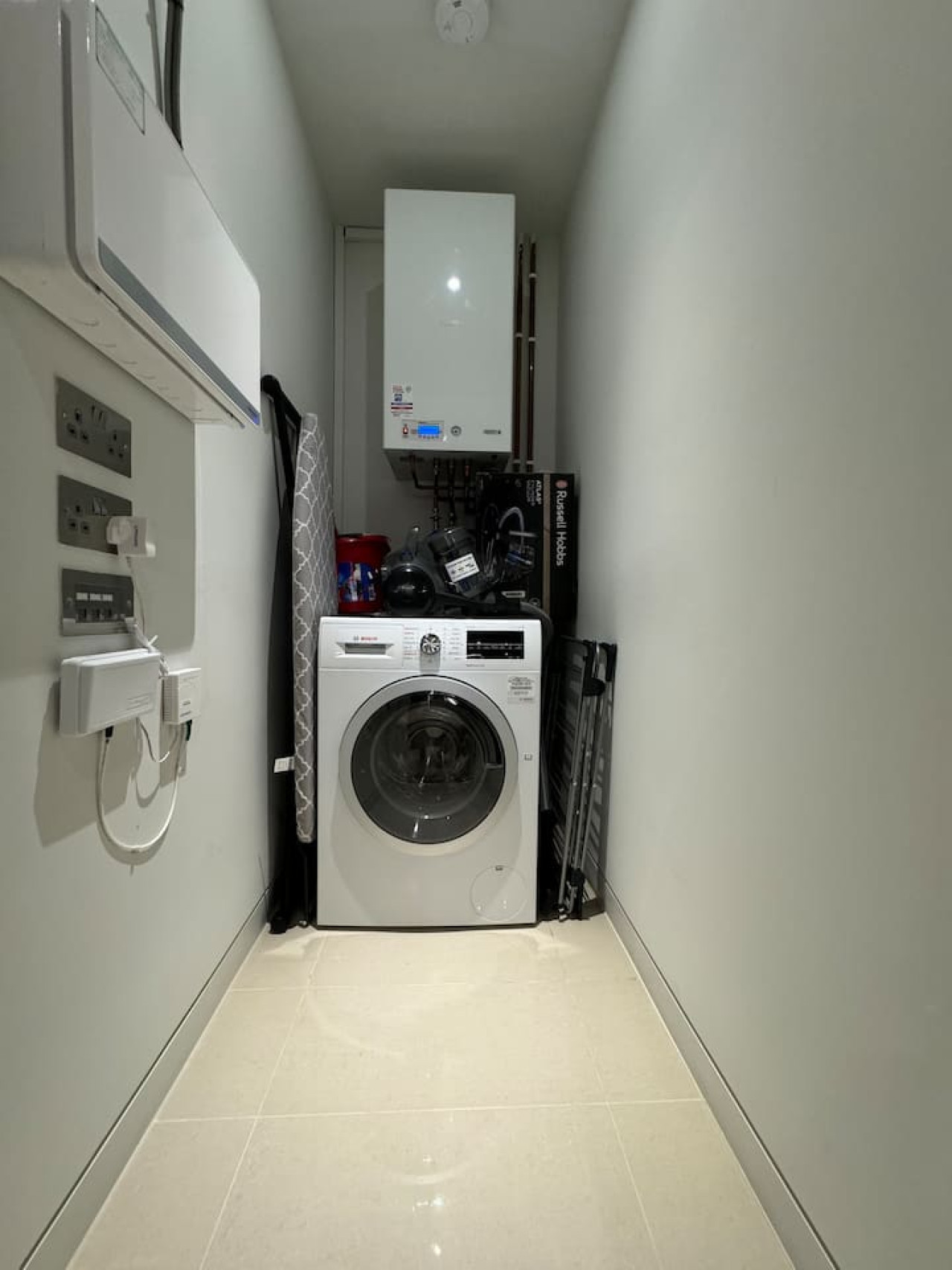 - Amenities: Internet, Wireless, Kitchen, Washing Machine, Elevator, Hair Dryer, Heating, Smoke detector, Carbon Monoxide Detector, Fire Extinguisher, Essentials, Shampoo, Hangers, Iron, TV, Paid parking, Linens, Toaster, Microwave, Oven, Electric kettle, Tub, Stove, Refrigerator, Kitchen utensils, Hot water, Private entrance, Extra pillows and blankets, Cooking basics, Laundromat, Long term stays allowed, Dining table, Cleaning products, Body soap, Conditioner, Shower gel, Clothing storage, Drying rack for clothing, Portable fans, Coffee, Wine glasses