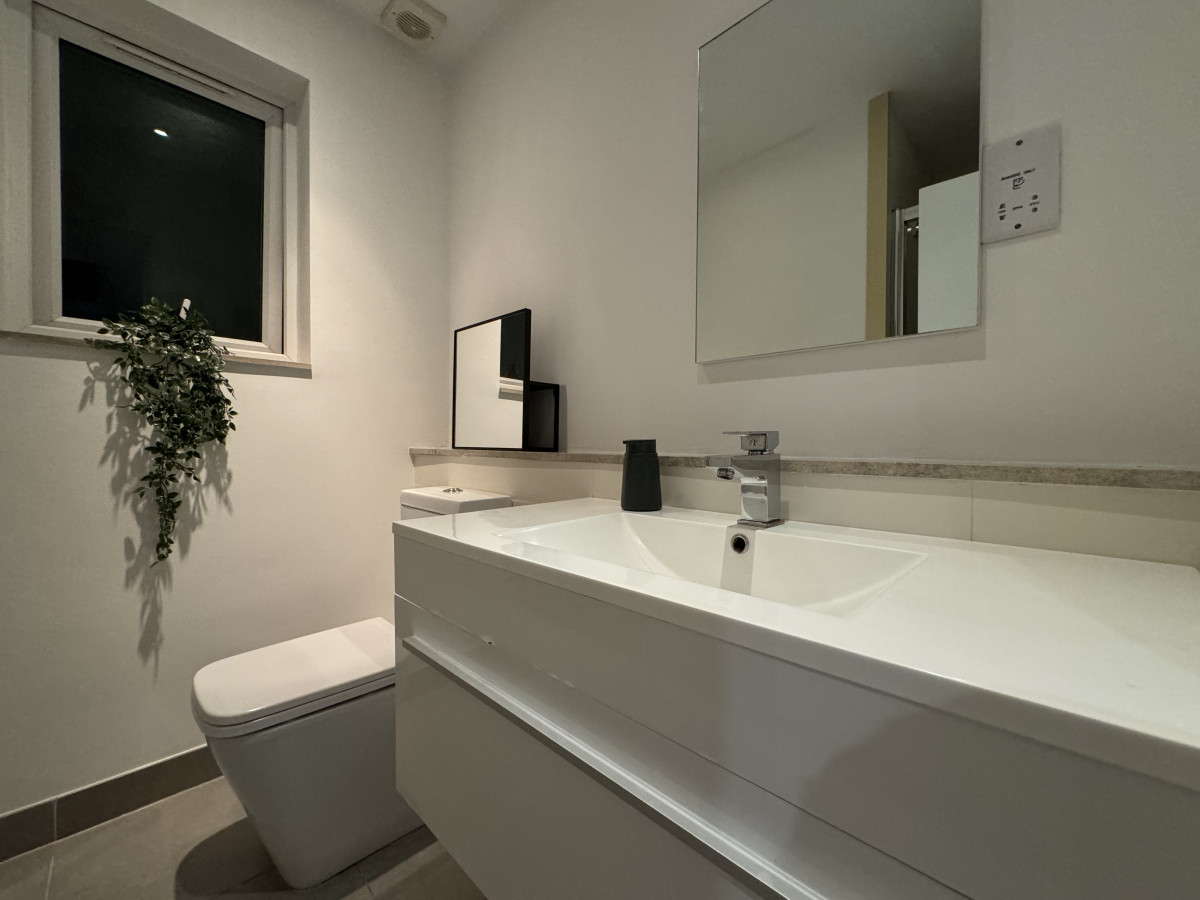 Enter via a staircase to the 1st floor with a specious bedroom and guest bathroom. Ascend to the 2nd floor for an open-plan living and dining area with a modern kitchen, plus a serene master bedroom with ensuite.