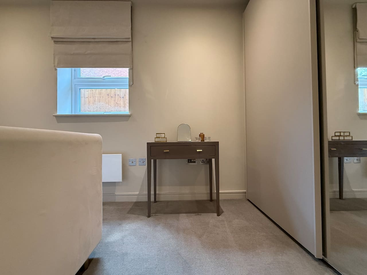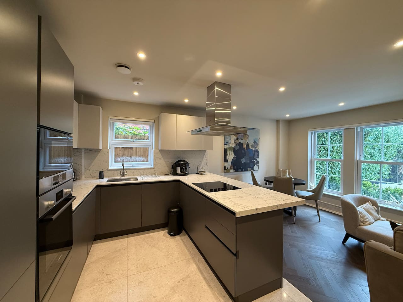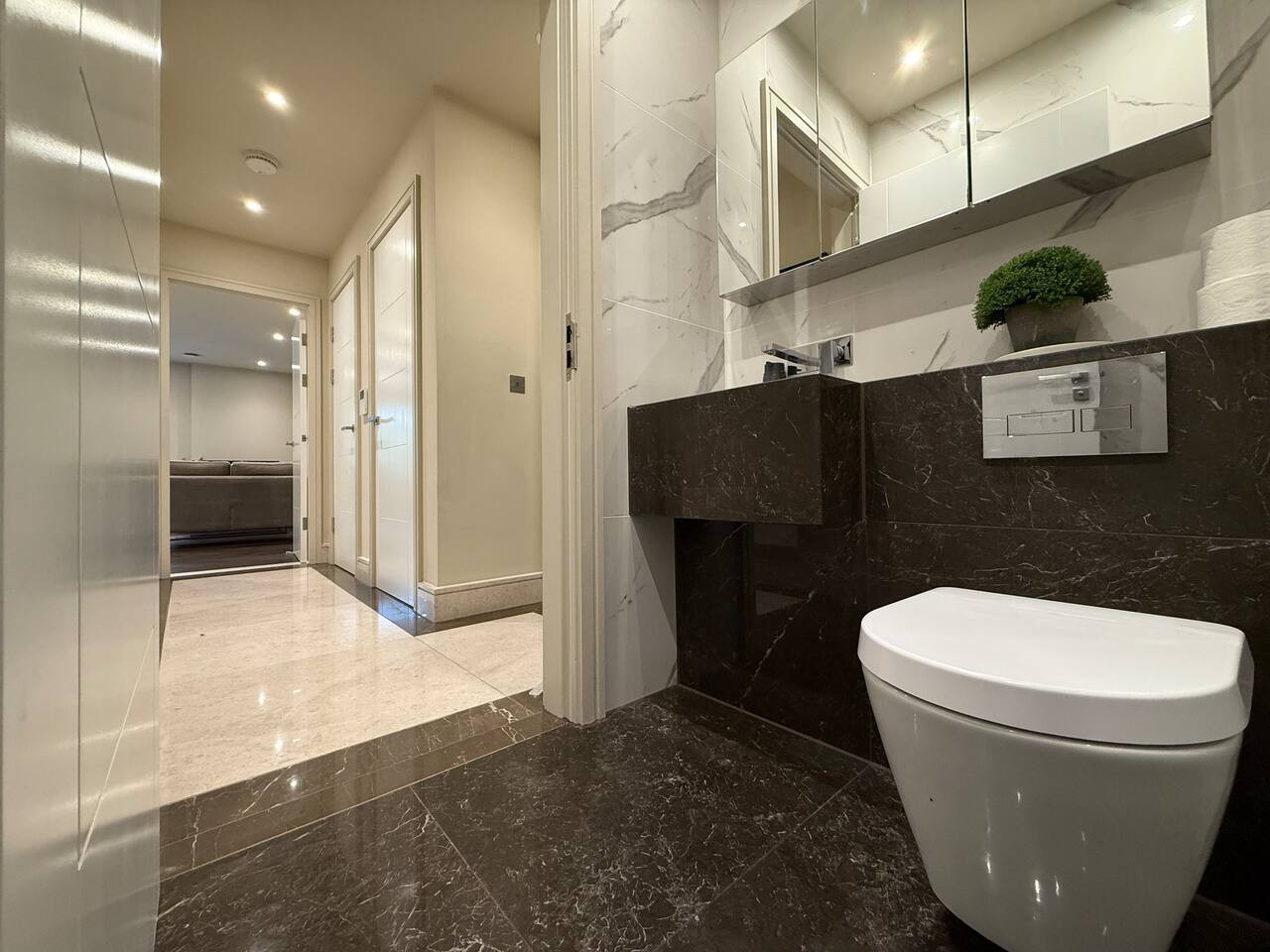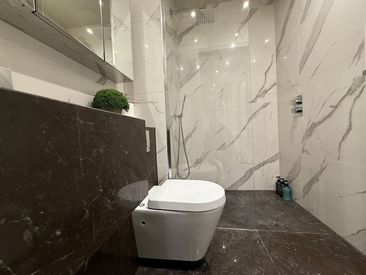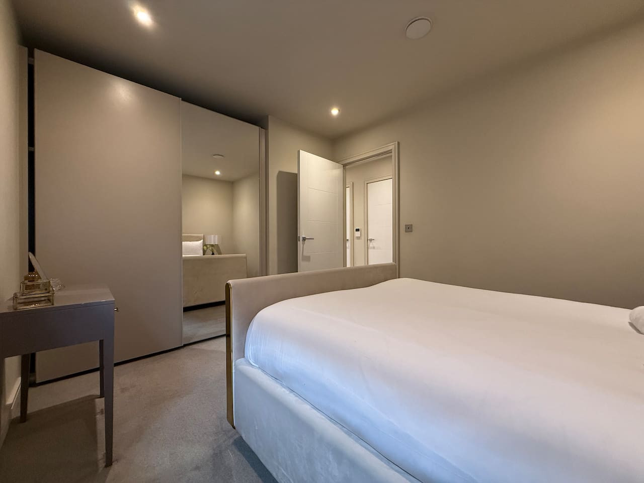 Experience contemporary comfort in this stylish 1-bedroom, 1-bathroom apartment. The open-plan living area features a cozy sofa and lounge space, perfect for relaxing or entertaining. The sleek kitchen is fully equipped with high-end appliances, a marble-effect countertop, and all the essentials for cooking and dining.